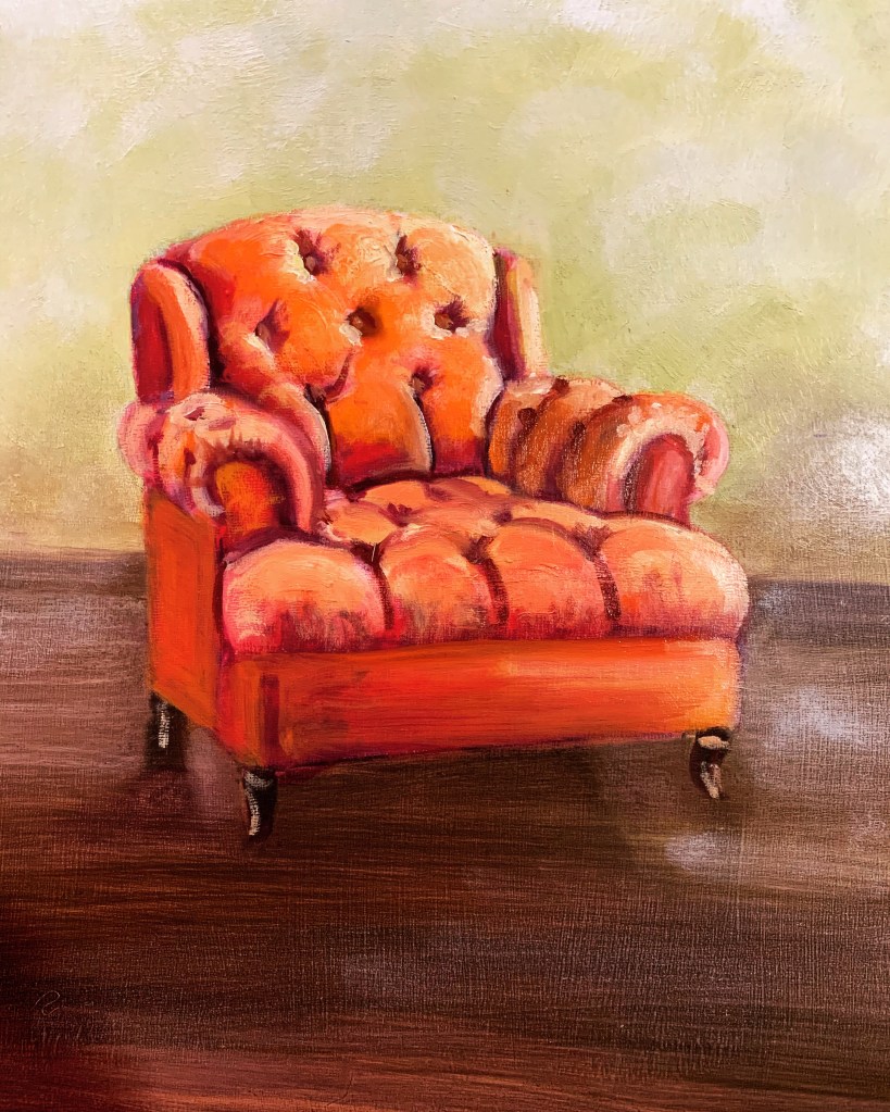 Still Life Orange Chair Date: October 28, 2020Author: Darilynn 0 Comments Orange Velvet Chair. Oil on Panel Share this: Click to share on X (Opens in new window) X Click to share on Facebook (Opens in new window) Facebook Like Loading...