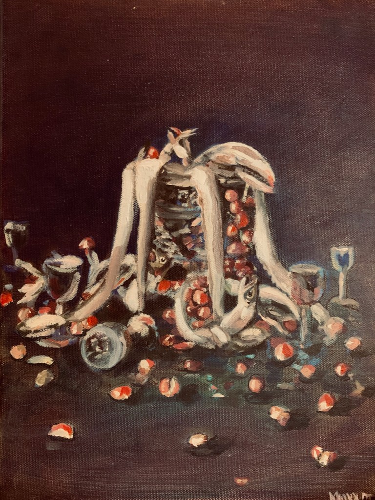 Still Life Seafood Feast, oil on gold canvas Date: October 29, 2020Author: Darilynn 0 Comments Share this: Click to share on X (Opens in new window) X Click to share on Facebook (Opens in new window) Facebook Like Loading...